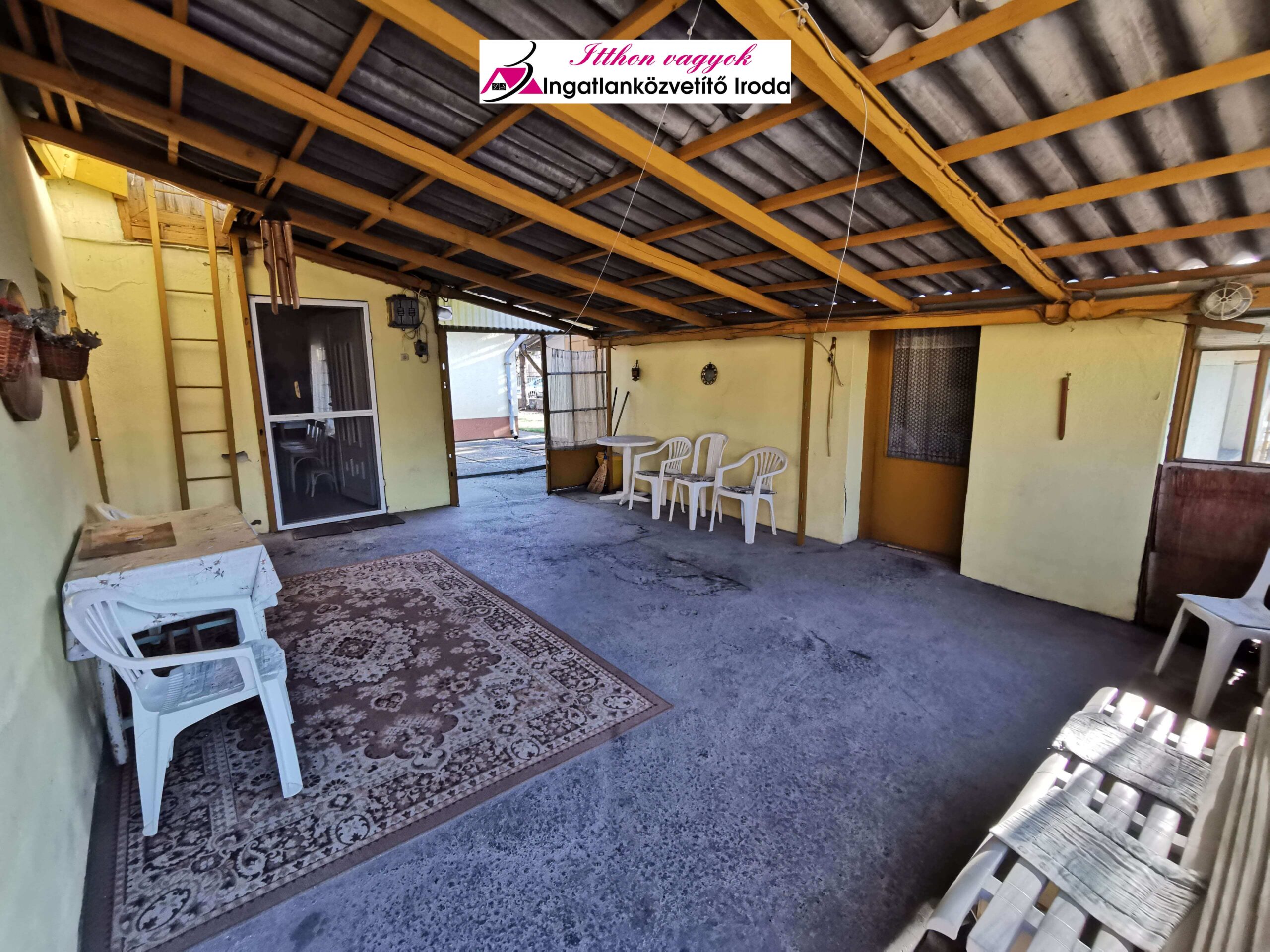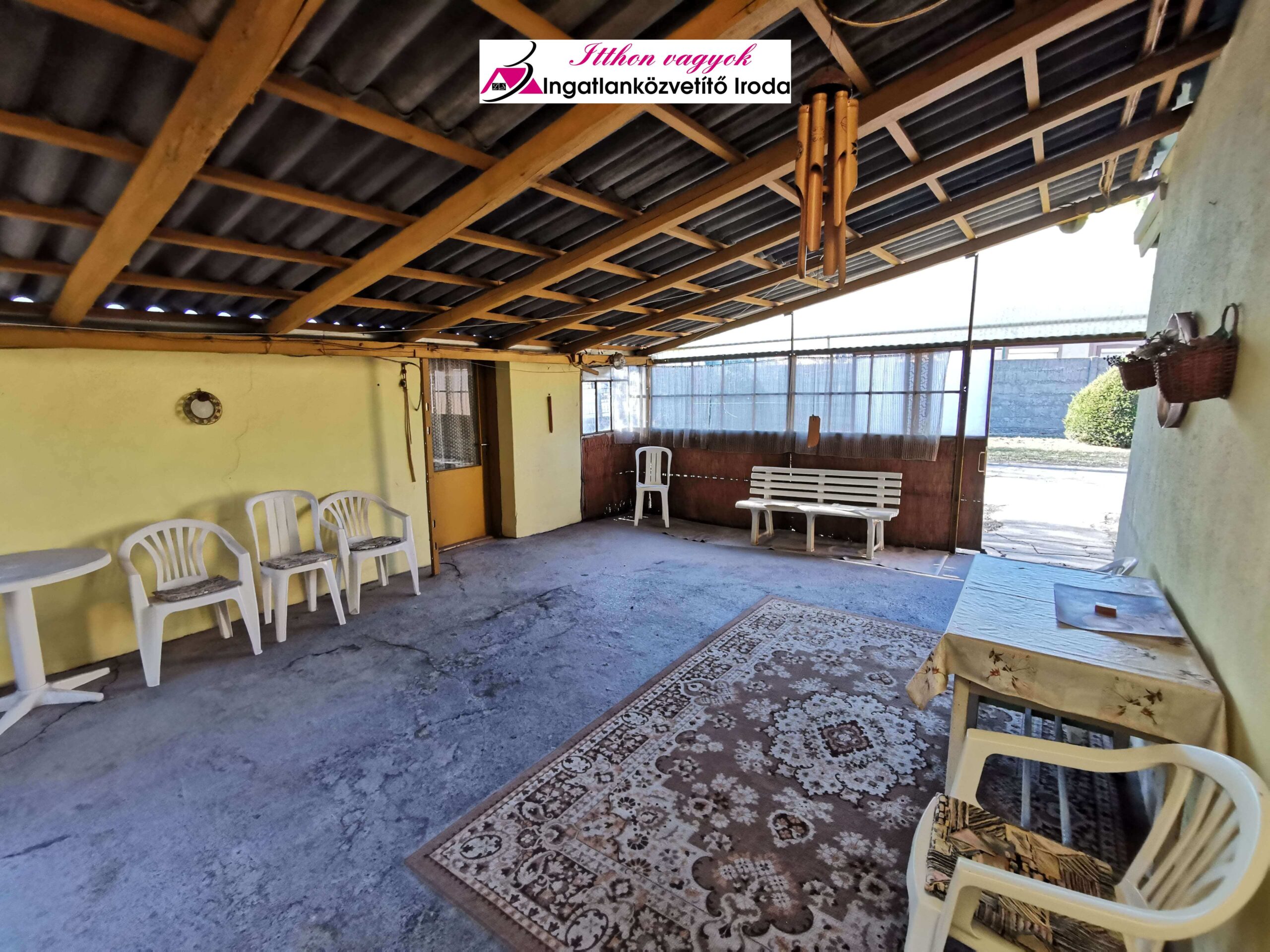 A konyha előtt fedett, két oldalról zárható terasz található, amelyen keresztül két tároló helyiség közelíthető meg.